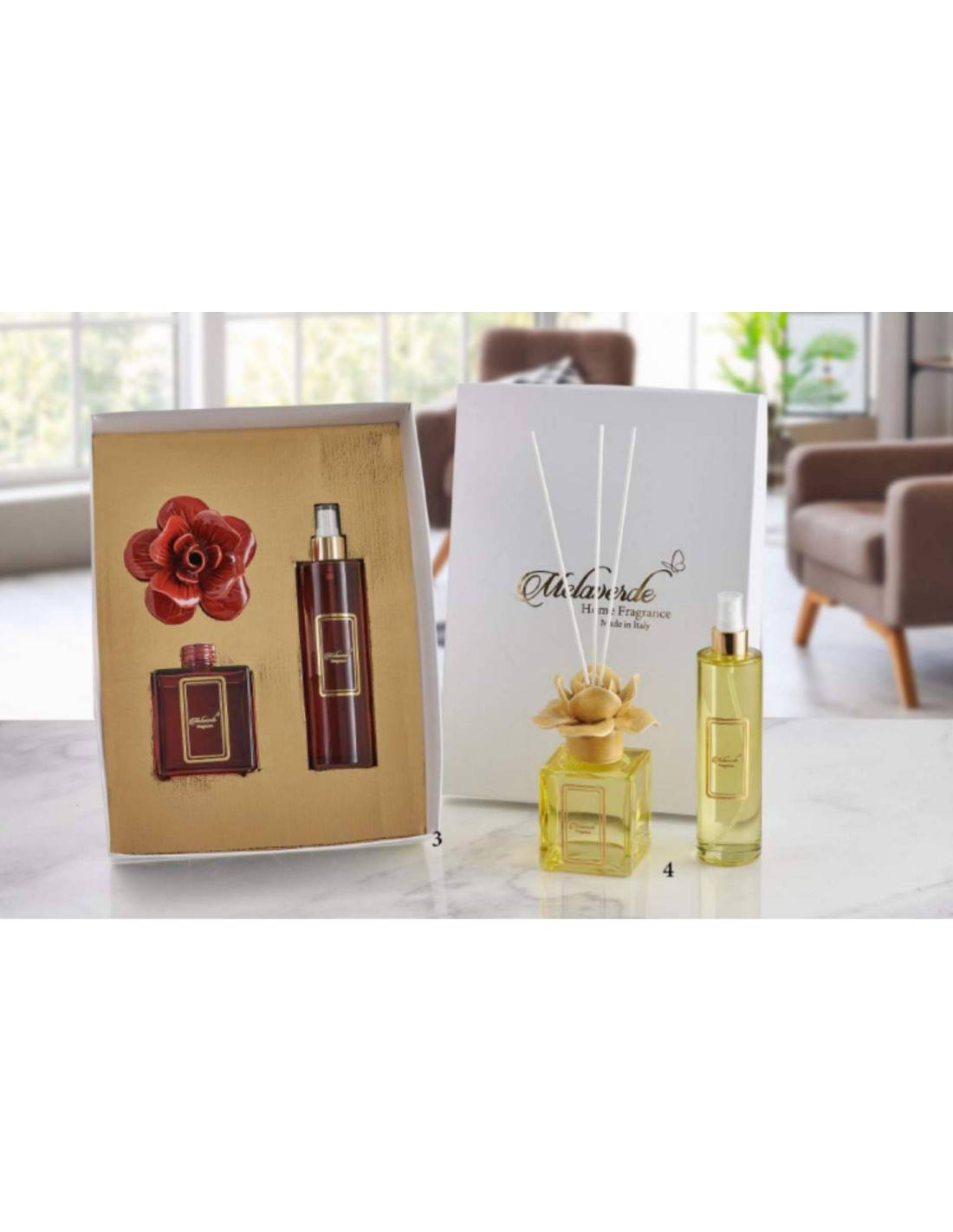 Cod.1 (3) - Art LH004 - Bomboniere Melaverde scatola profumo e profumatore 250 ml fiore rosso;