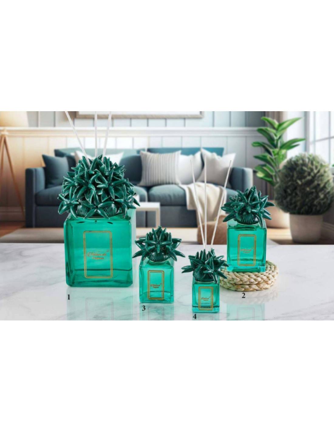 Profumatori bomboniere fragranze abbinate con tappo bomboniere mare conchiglie e stelle marine in ceramica verde.