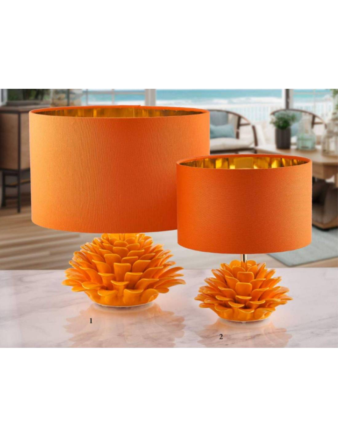 Lampade led da tavolo con telecomando forma sferica tappo dorato con decoro tema mare corallo in ceramica blu.