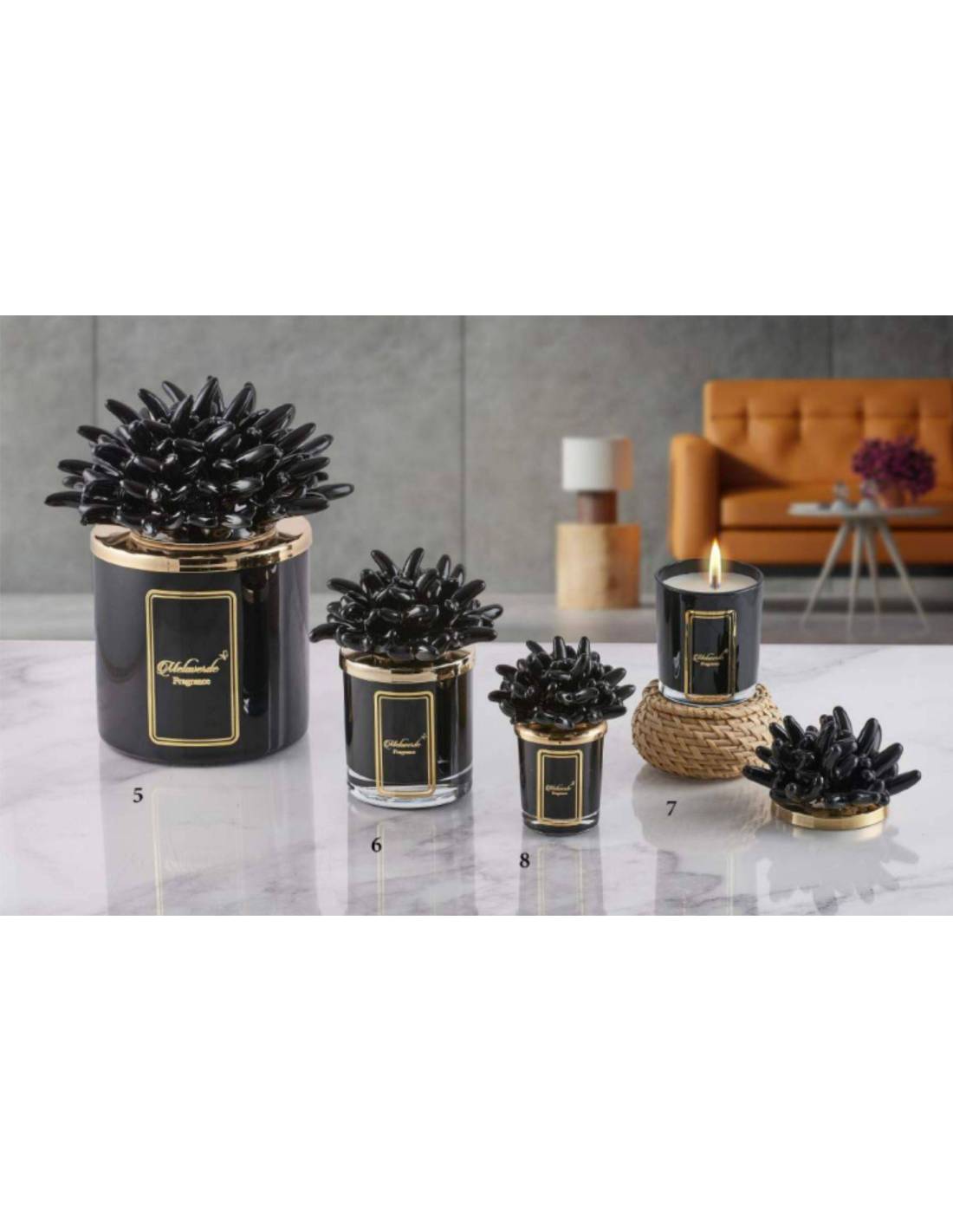 Diffusori per ambienti fragranza tema mare abbinata al corallo in ceramica nera.