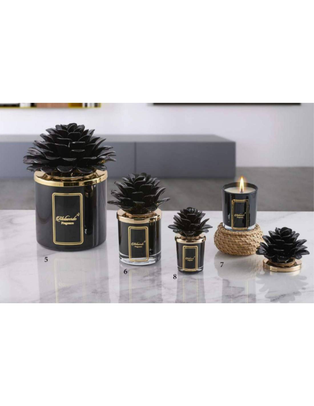 Candele profumate in vetro Melaverde bomboniere pianta fiore in ceramica nera