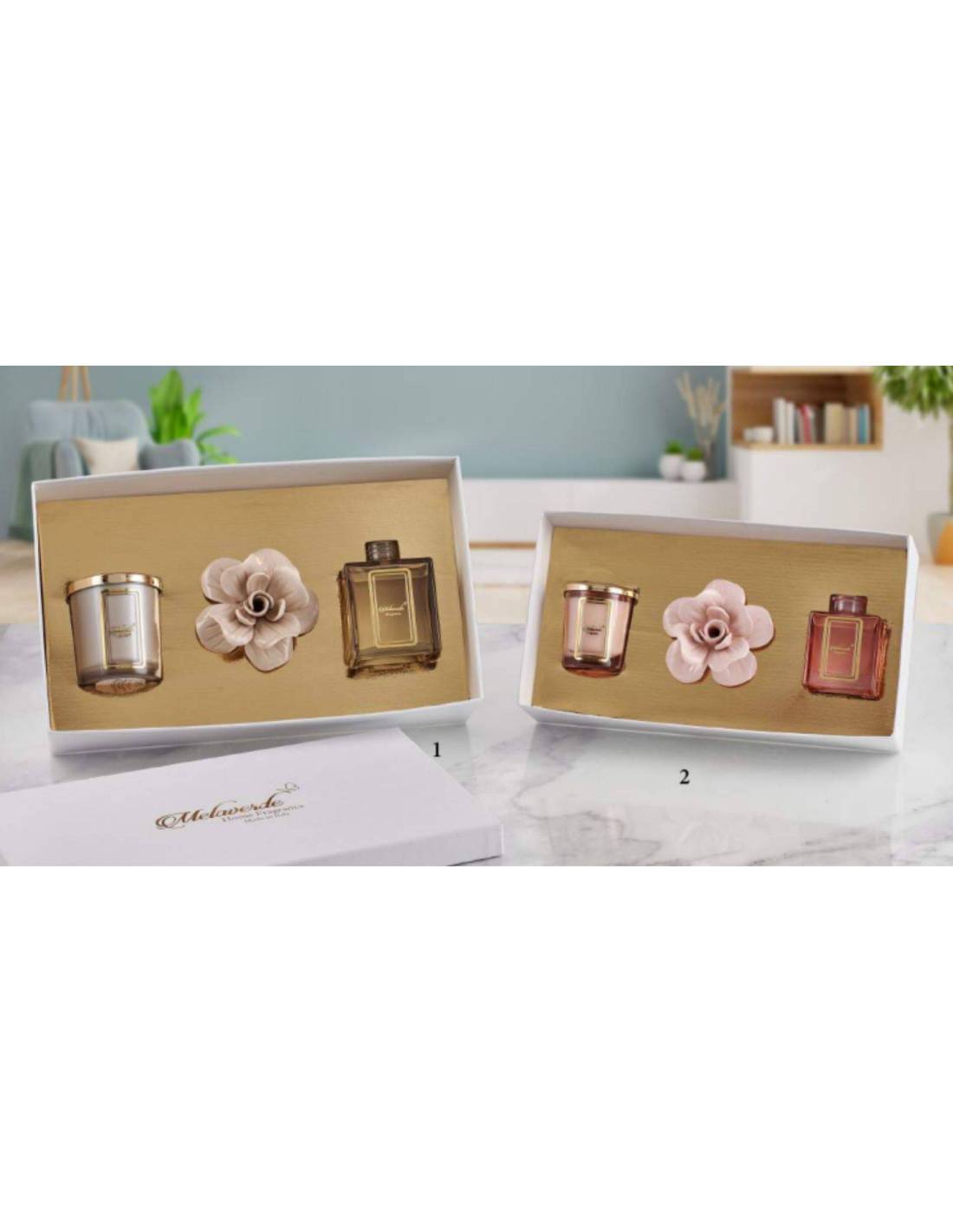 Fiore bomboniere in ceramica scatola diffusore e candela profumata Melaverde