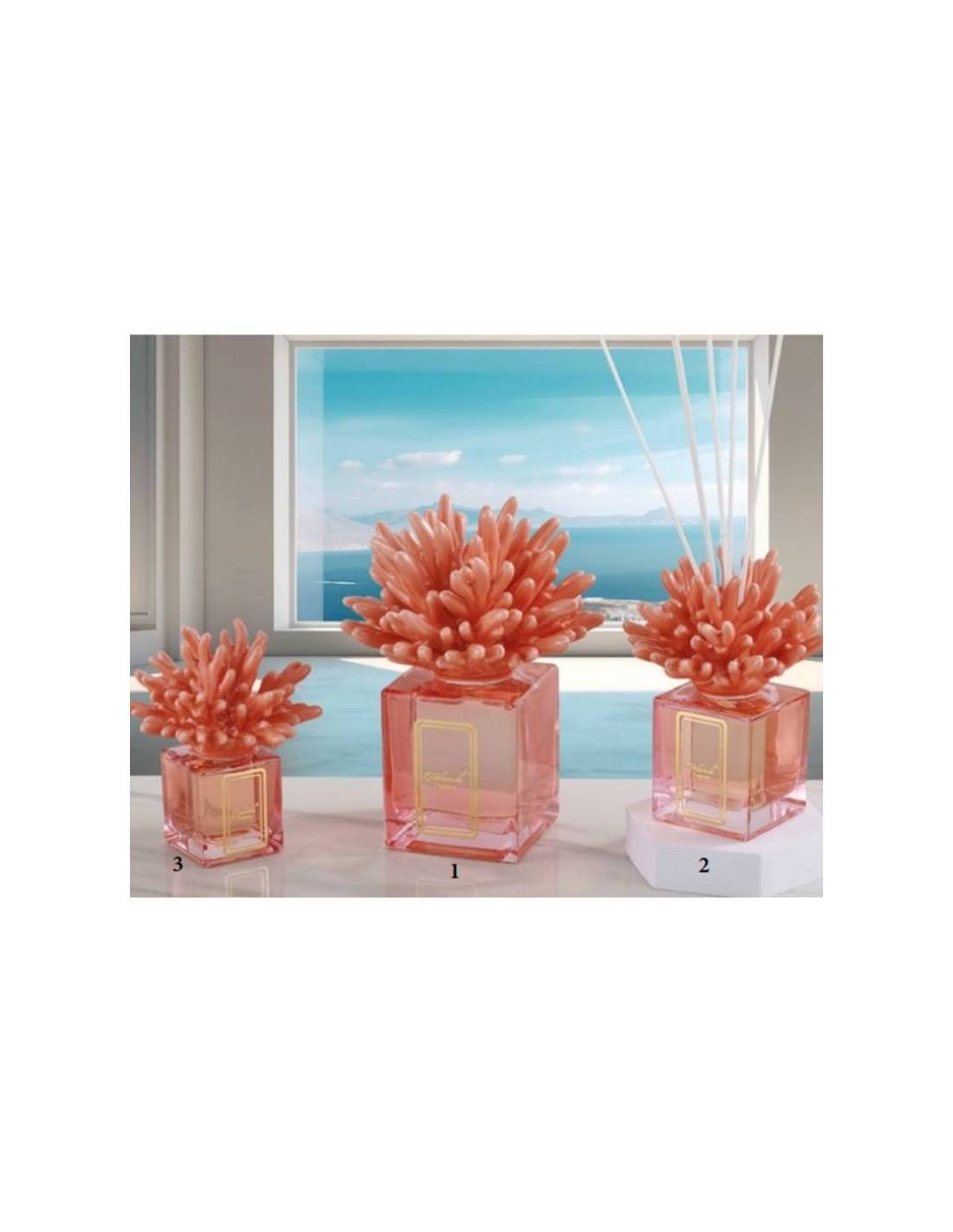 Bomboniere Melaverde Set regalo candela profumata e diffusore ambiente corallo in ceramica