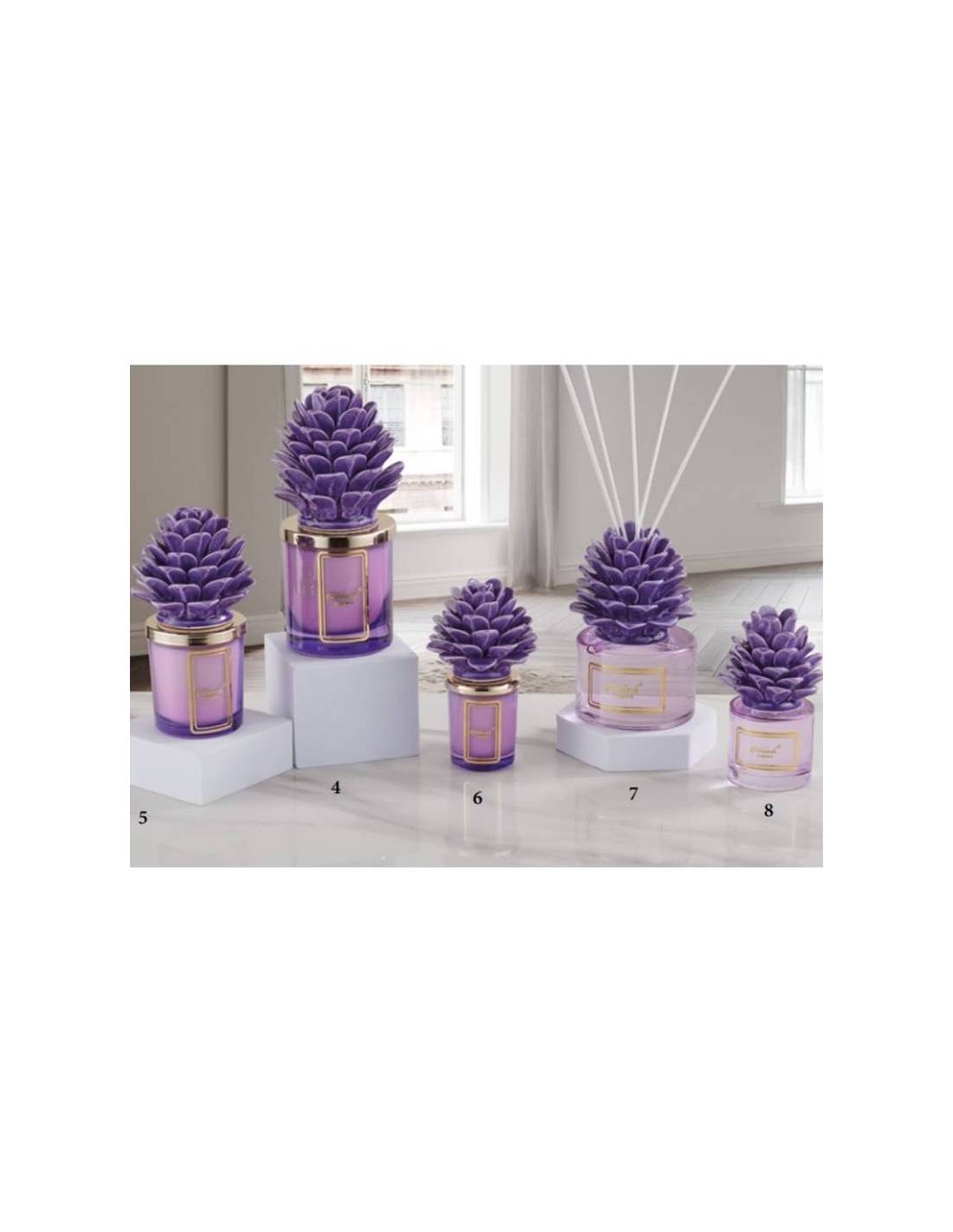 Bomboniere particolari candele profumate tappo dorato con fiore in ceramica bordeaux.