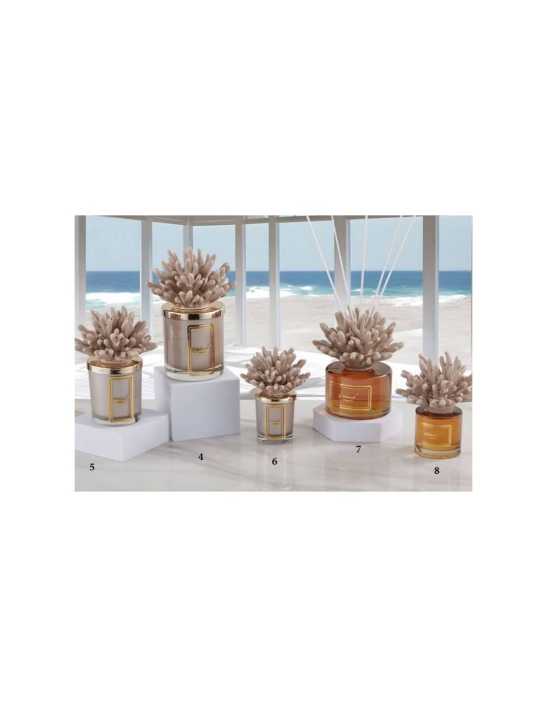 Profumatore ambiente fragranza abbinata al tappo tema mare conchiglie e stelle marine in ceramica gialla.