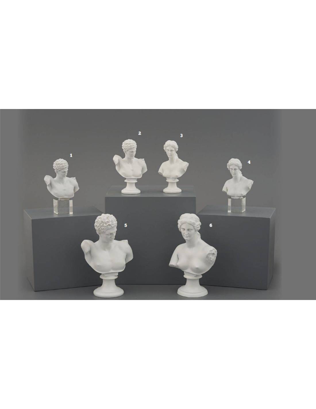Cod. 1 - 622X607 - Busti statue Hermes bianche base cubo (15cm circa);