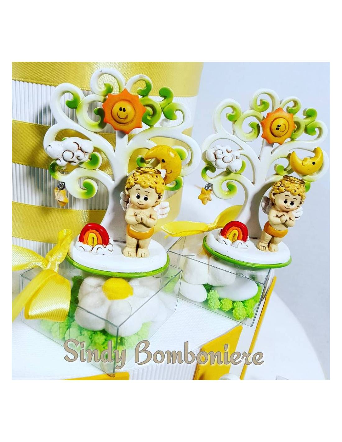 Originali Bomboniere Battesimo Albero della Vita angioletto con magnete sole luna e nuvola