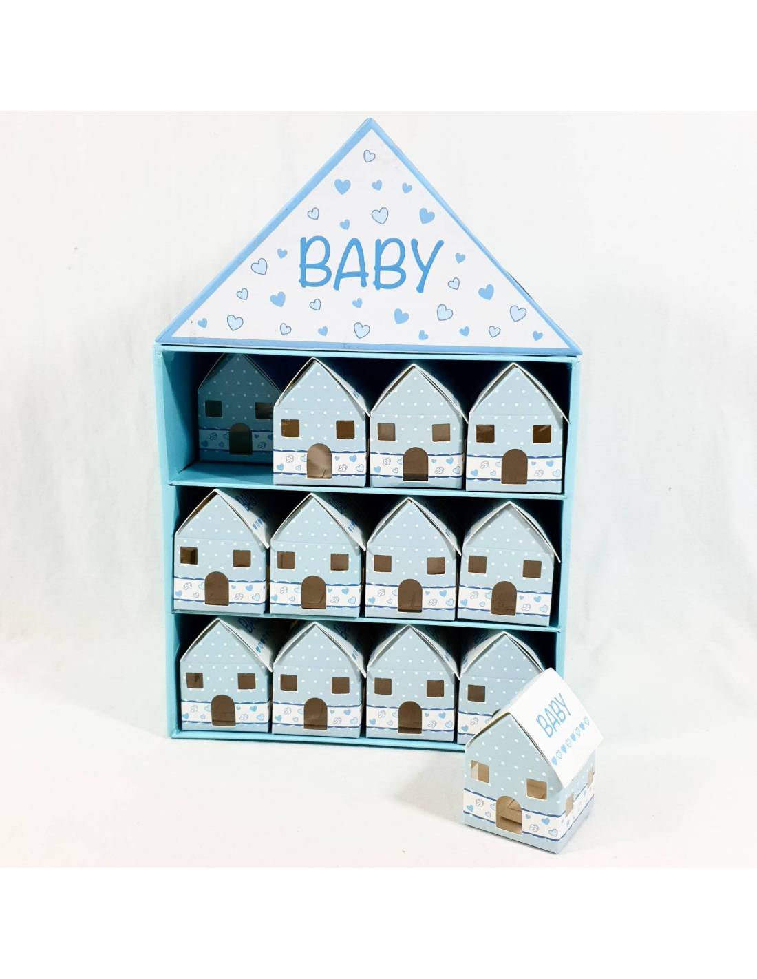 Portaconfetti scatoline a casetta per bomboniere nascita maschietto