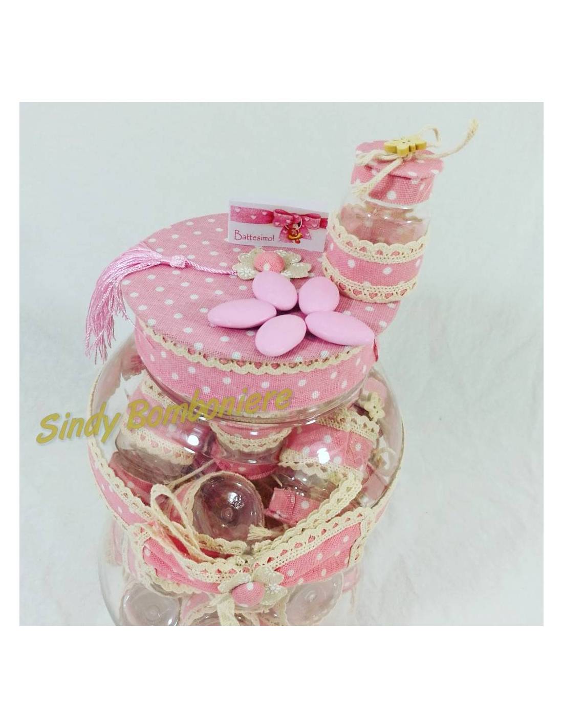 Portaconfetti per bomboniere bambina nascita con stoffa rosa