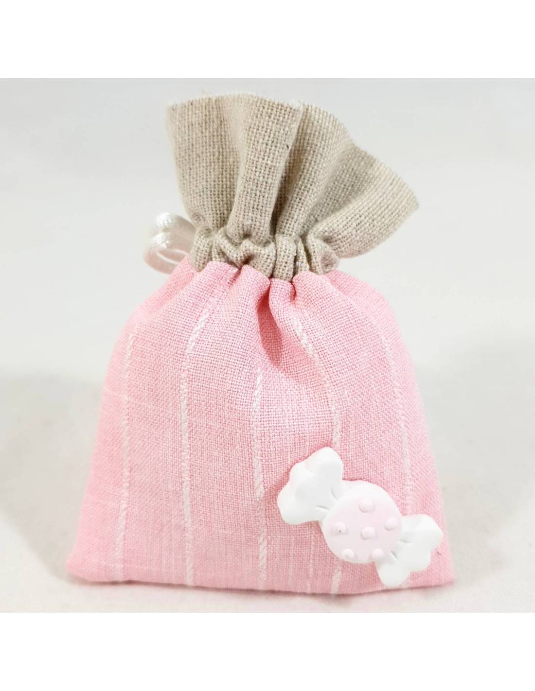 Un carinissimo sacchetto rosa in cotone e caramella gessetto