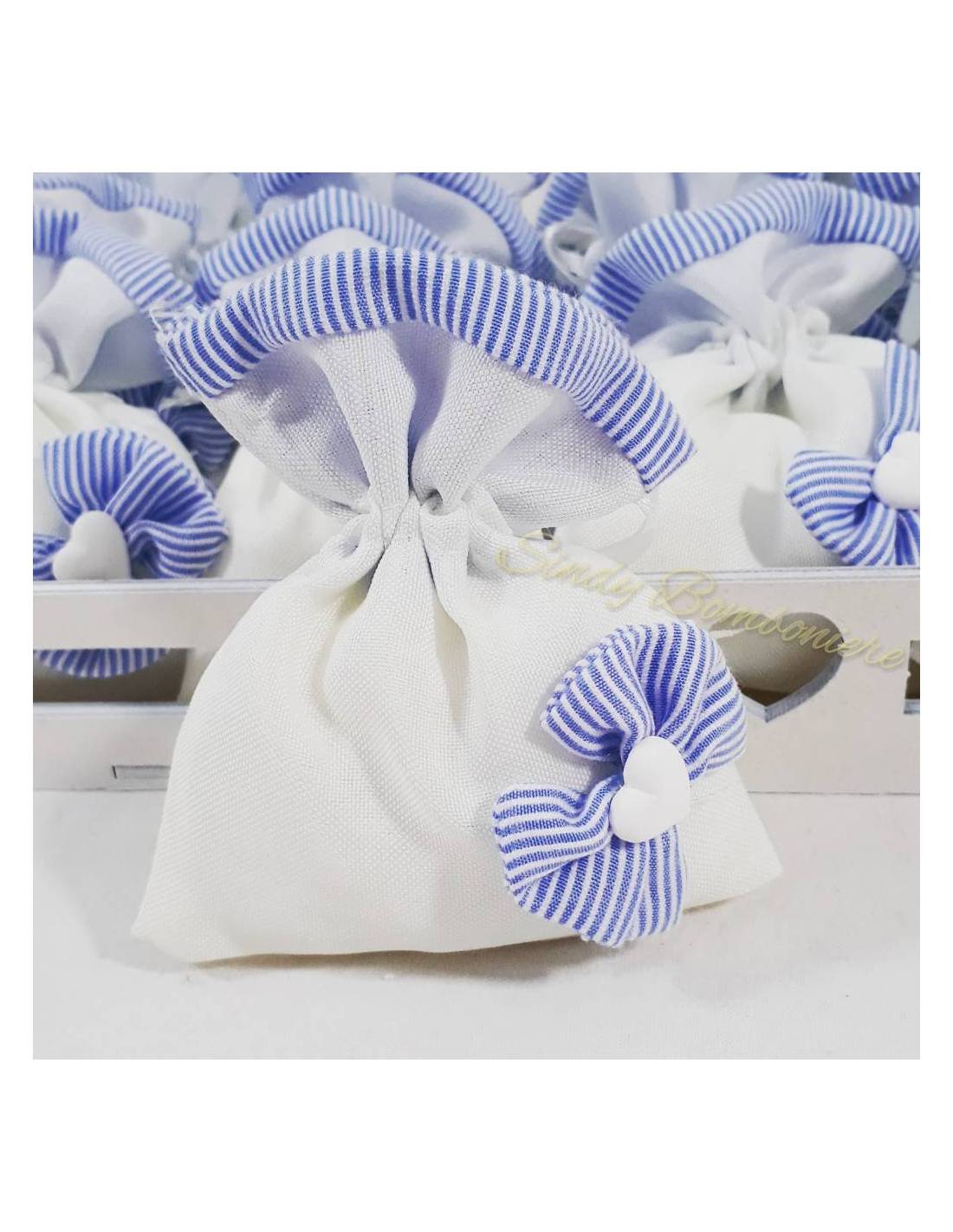 Bomboniere nascita 25 sacchettini bianchi e azzurri