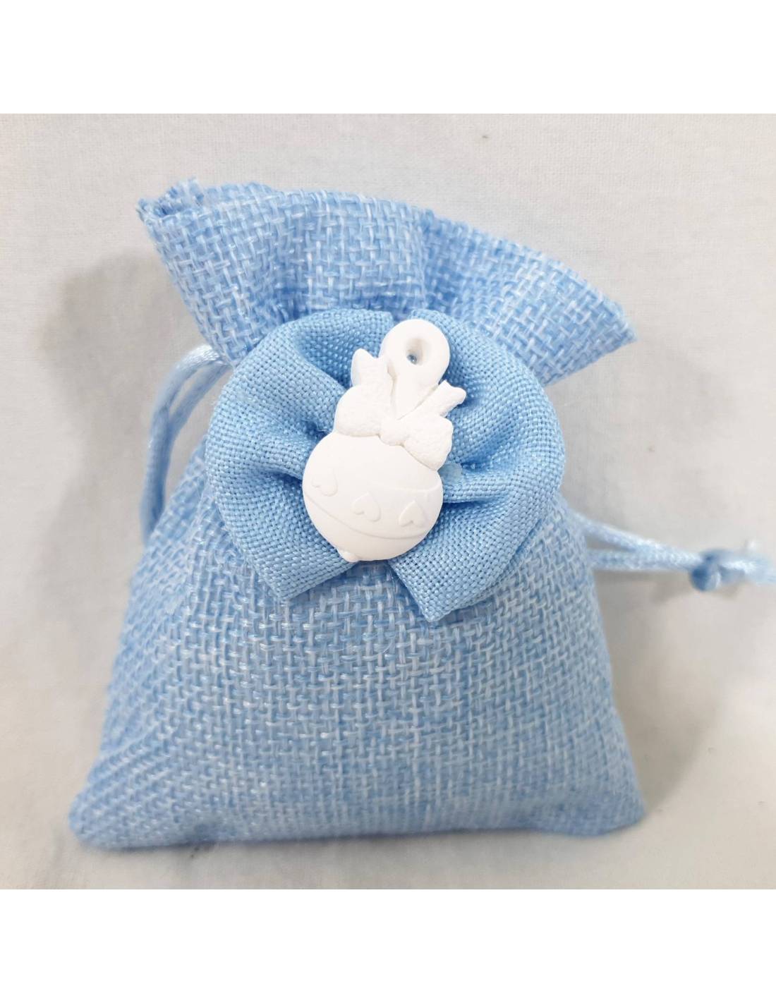 Bomboniere nascita sacchetto in cotone rigato per maschietto