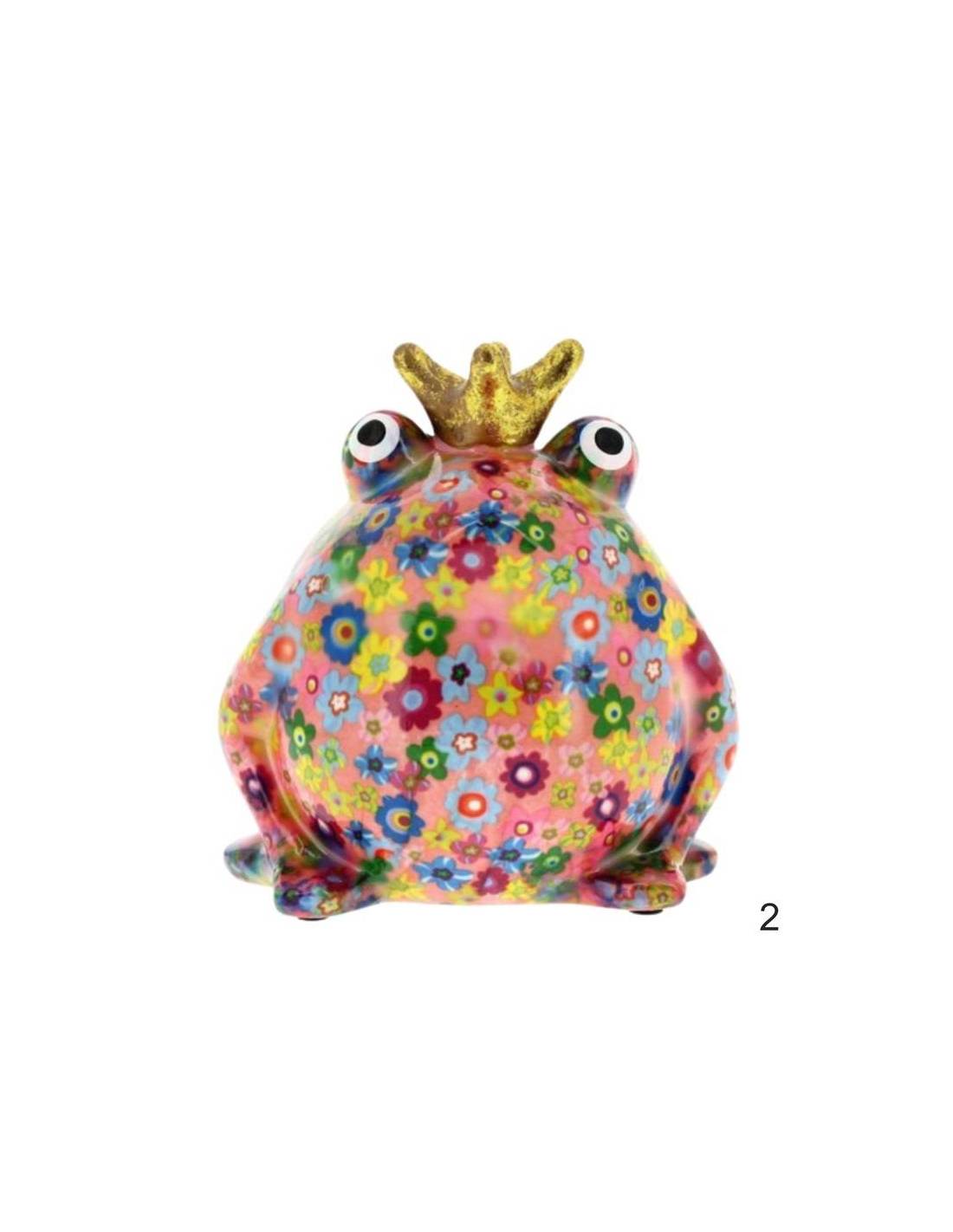 Cod.2 - Salvadanaio bomboniere Re Ranocchio multicolor tema floreale;