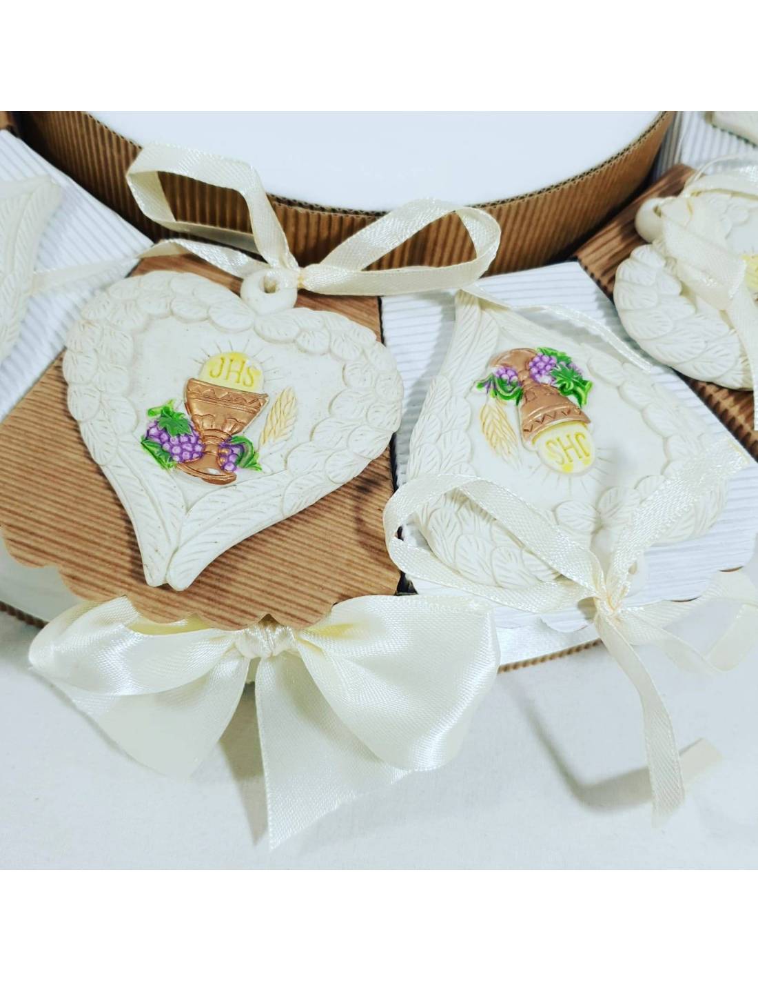 Torta bomboniera per Prima Comunione con dettaglio centrale Claraluna.