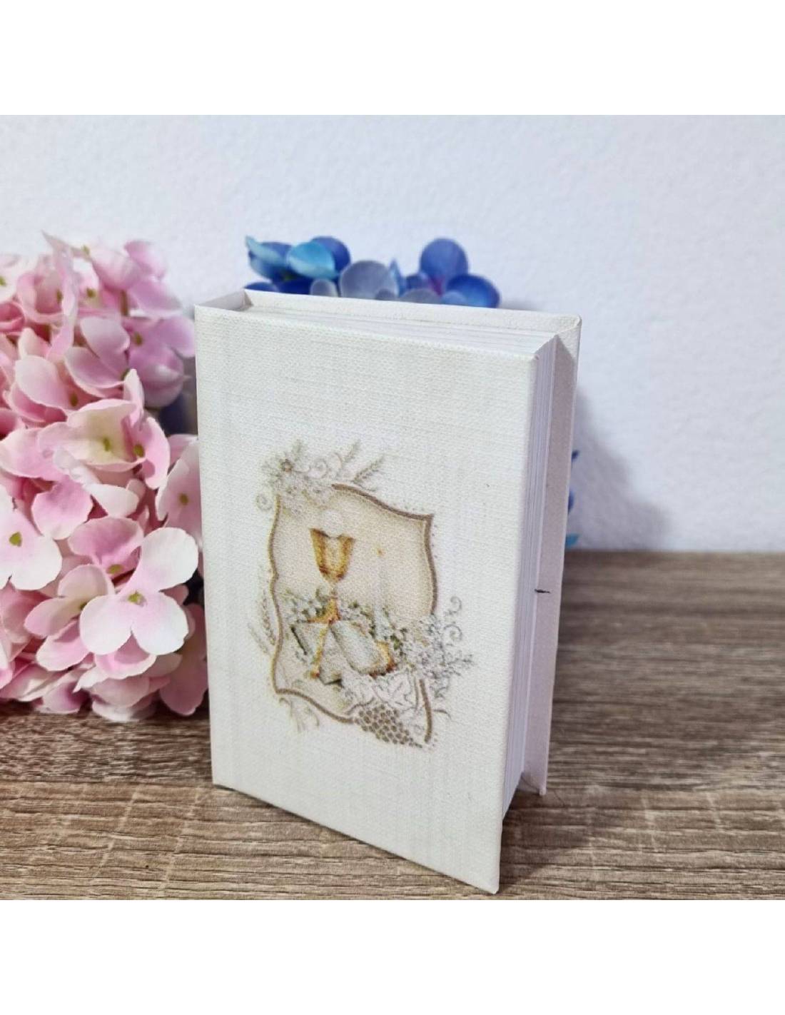 Bomboniere per Comunione Vangelo con copertina rigida con l'immagine dell'eucarestia, incluso la confezione a scelta.