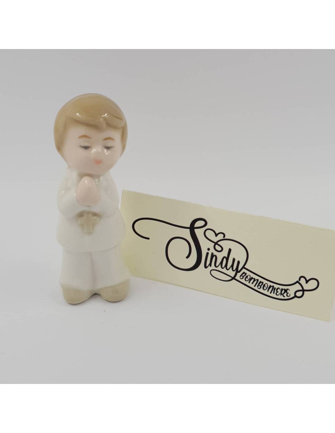 Queste candele bomboniere Prima Comunione sono in ceramica e il bambino o bambina in resina dipinta a mano.