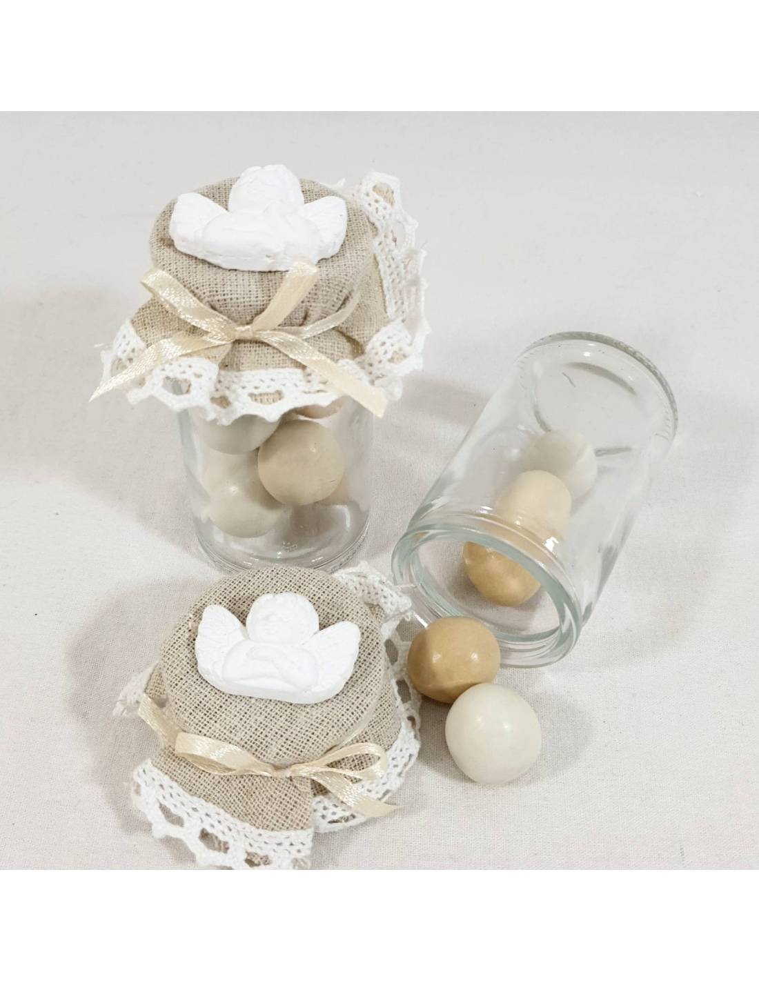 Bomboniera Comunione portaconfetti vasetto con Angelo bianco.