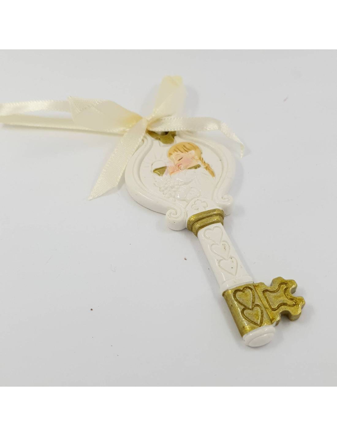 Chiave appendino bomboniere comunione ragazza in preghiera