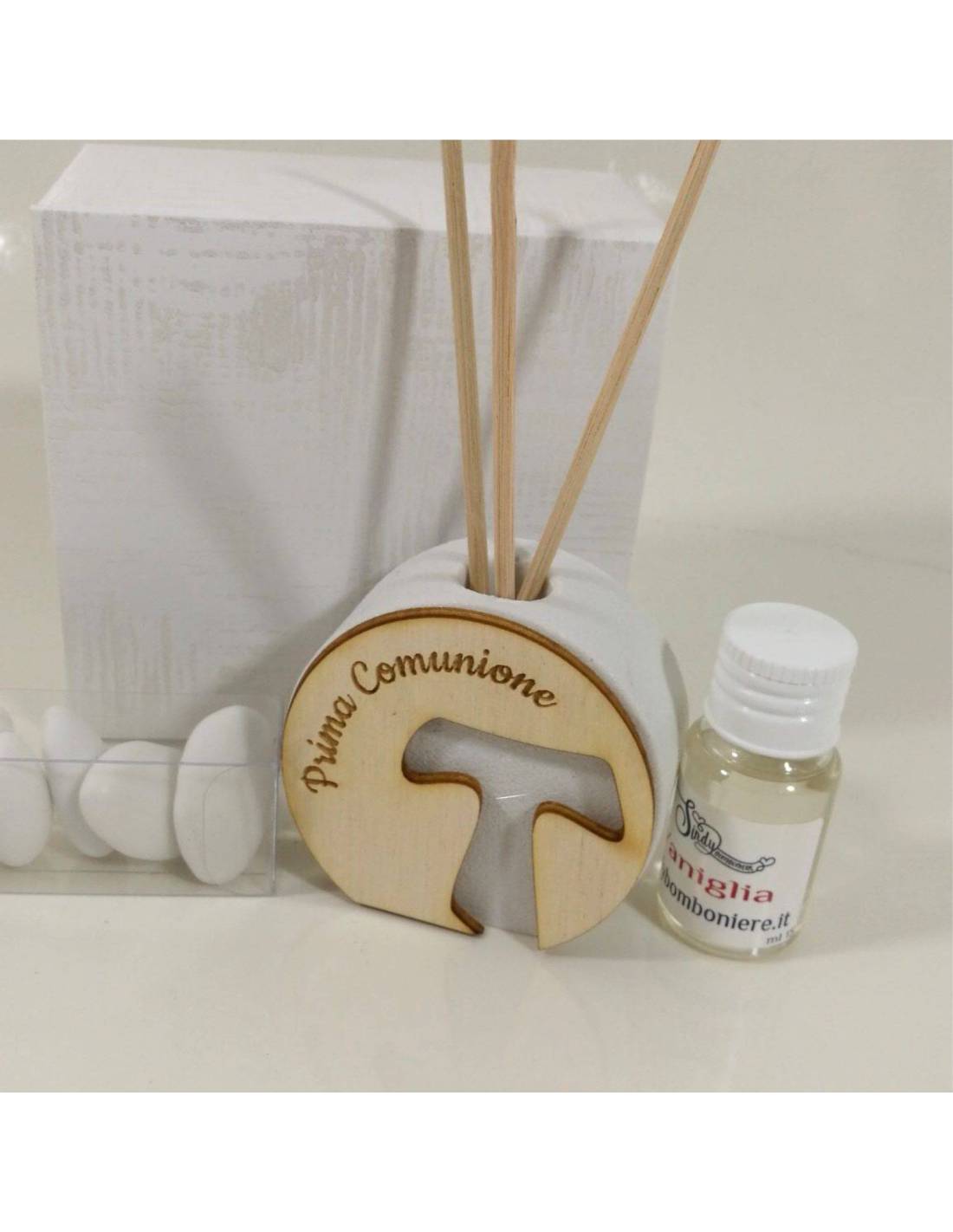 Profumatori bomboniere economici per Comunione icona sacra croce tao completi di bastoncini, essenza e scatola.