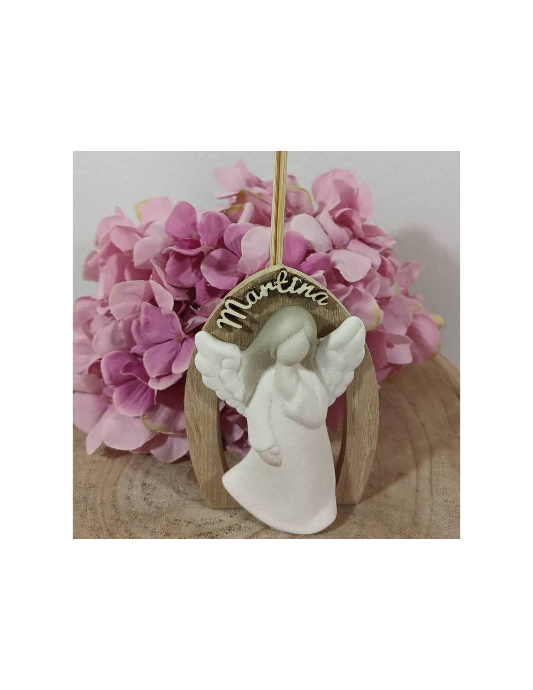 Bomboniere angeli profumatore con nome personalizzato sul legno