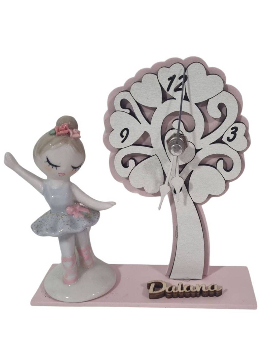 Orologio albero della vita in legno e plexiglas con l'incisione del nome della tua bambina e la ballerina in porcellana.