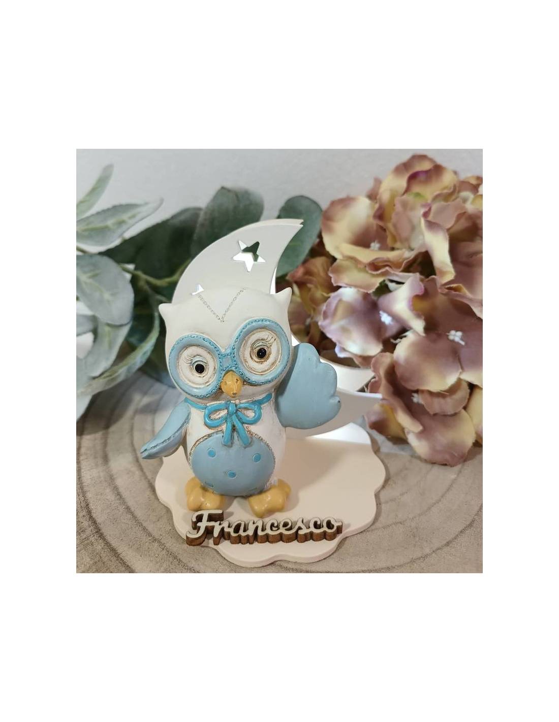 Bomboniere Comunione lampada luce led gufetto in porcellana lucida nome personalizzato