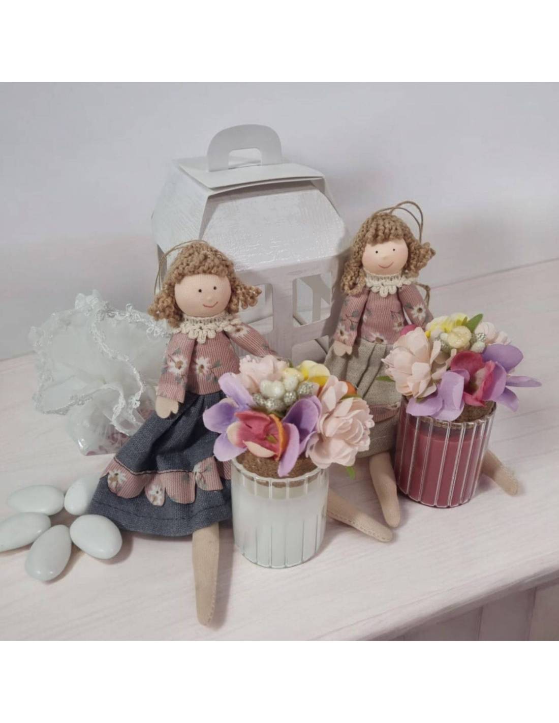 Il prezzo si riferisce ad un set bomboniere ma ci sono due bambole per far vedere i colori assortiti.