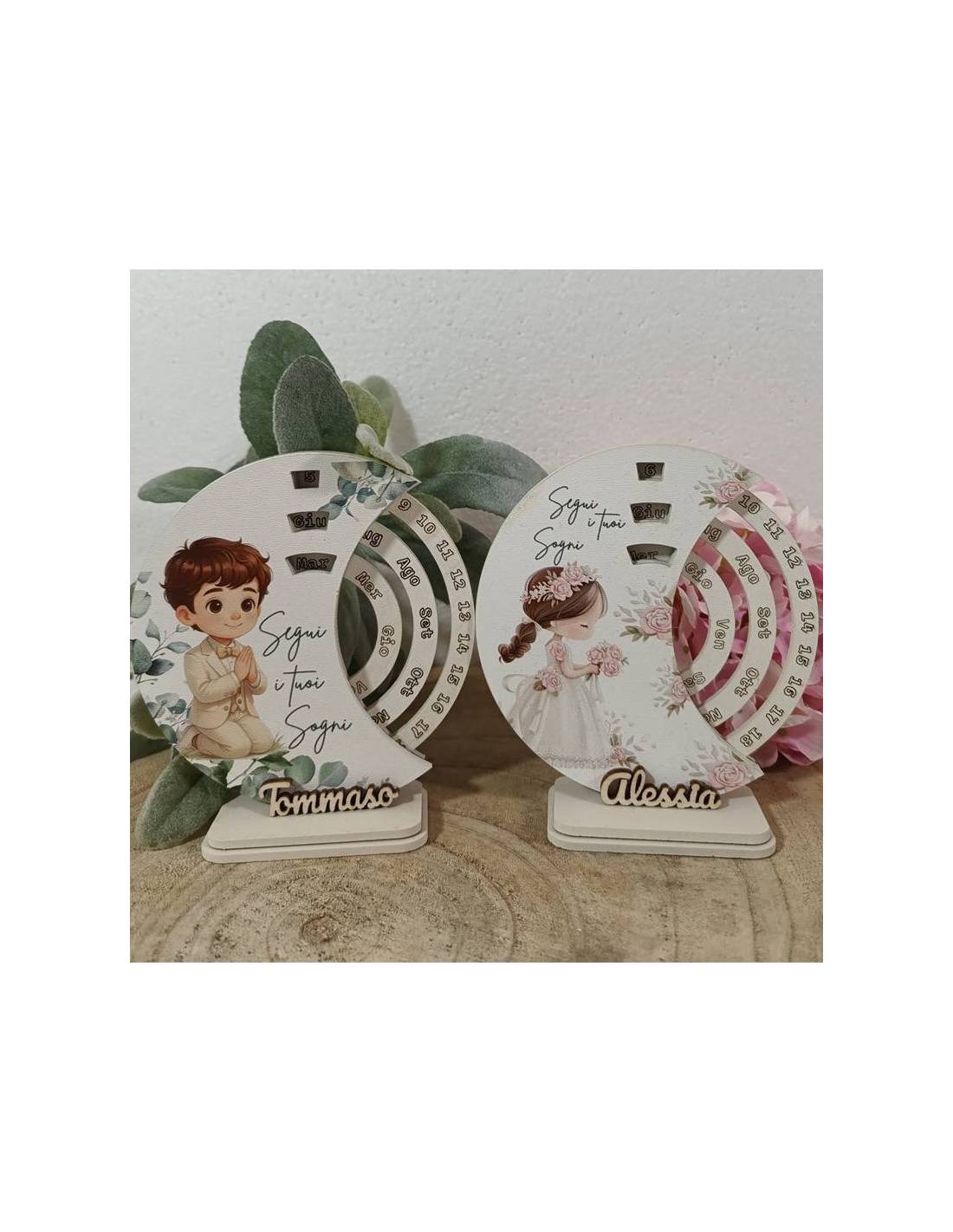 Bomboniere per Comunione calendario perpetuo con nome personalizzato in legno