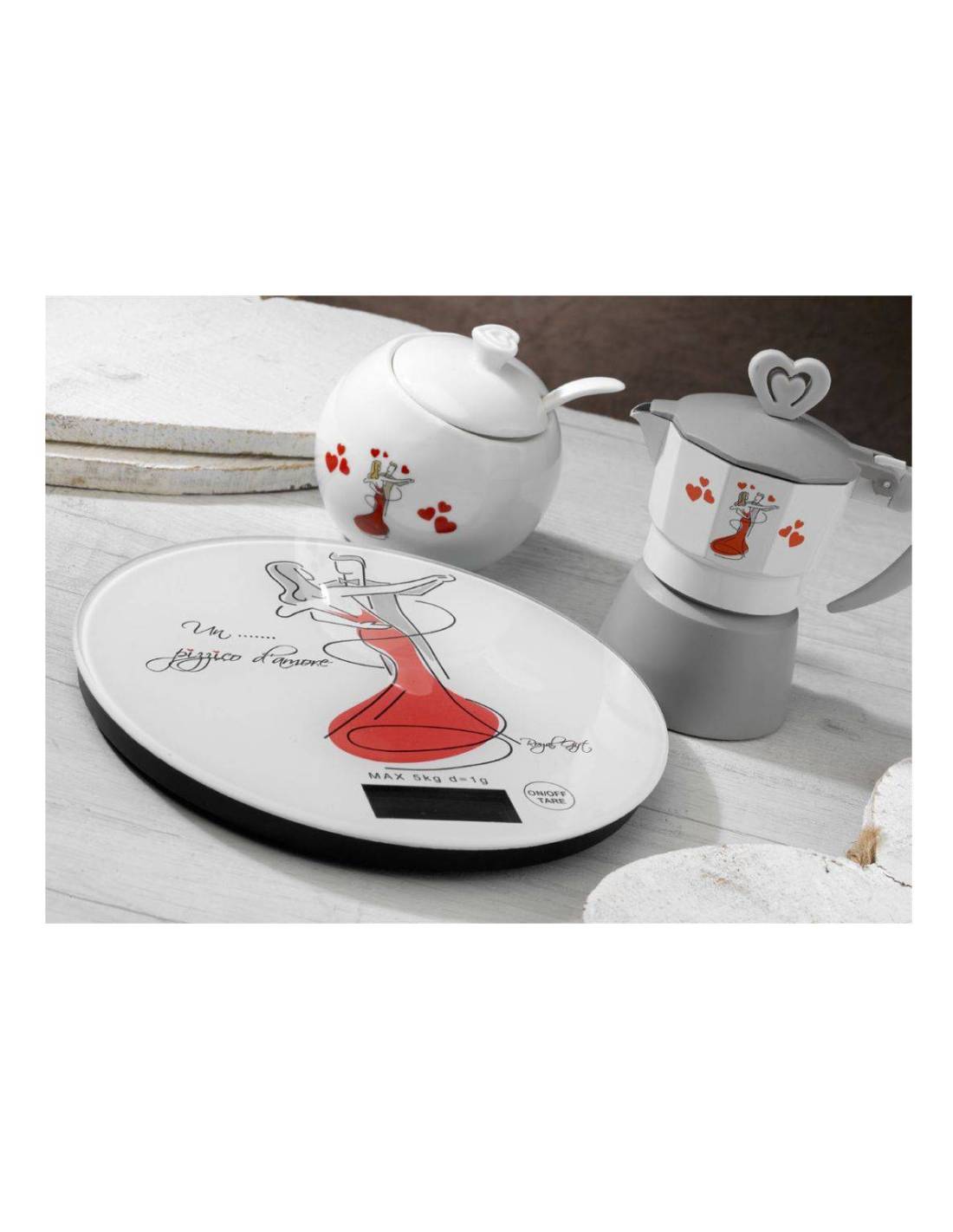una zuccheriera in ceramica cucchiaino abbinato in ceramica bianca con sposi che danzano.