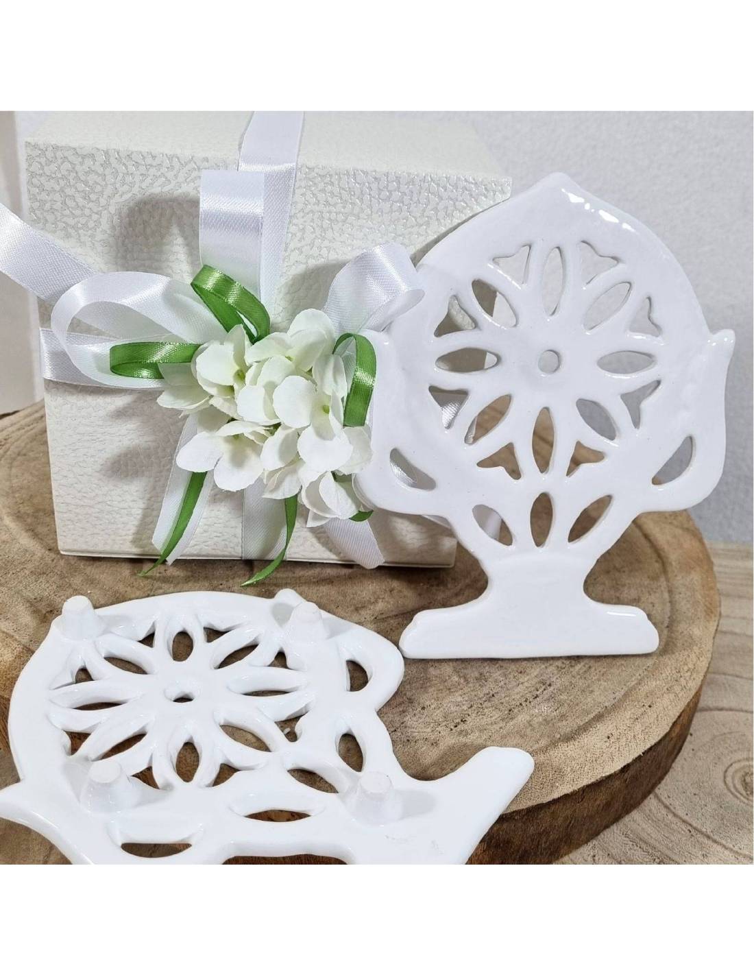 Bomboniere matrimonio utili cucina sottopentola a forma di pumo in ceramica bianco lucida.