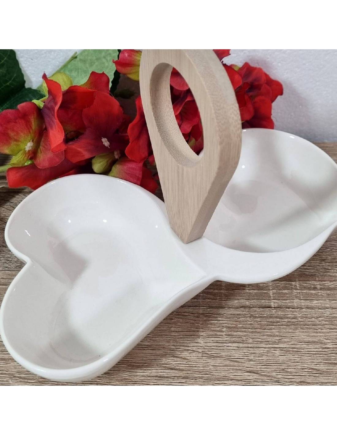 Bomboniere matrimonio utili antipastiera 2 cuori con manico in legno di bamboo