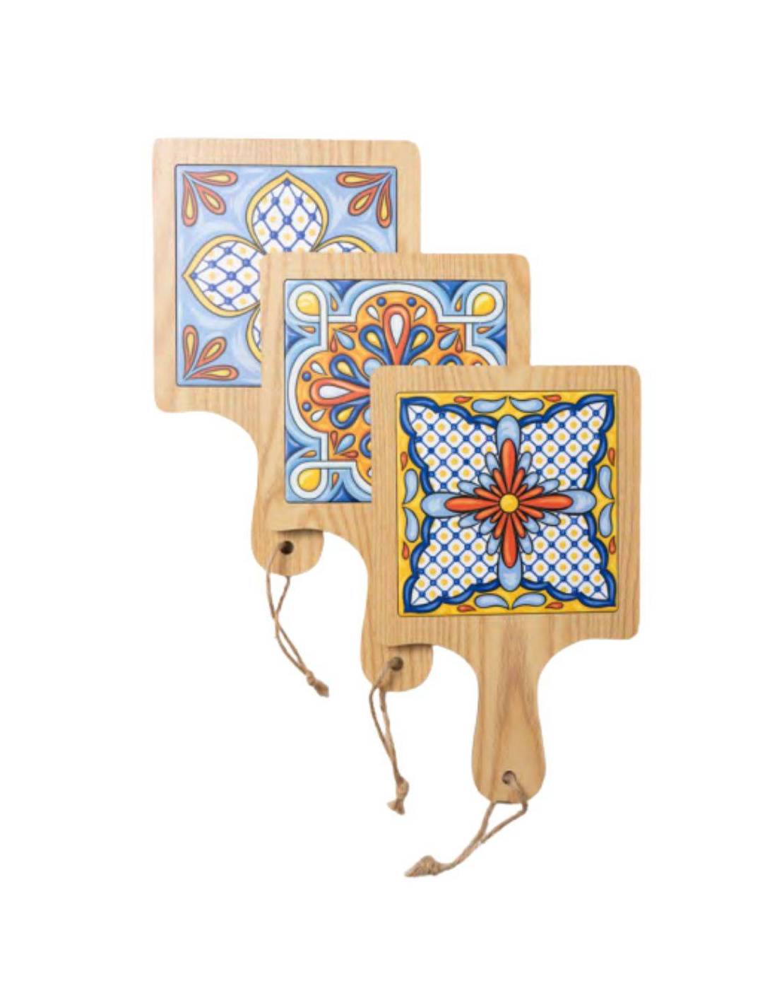 Originali bomboniere matrimonio utili tagliere in legno con mattonella in ceramica che ha il decoro siciliano ideale per tagliare e servire i formaggi.