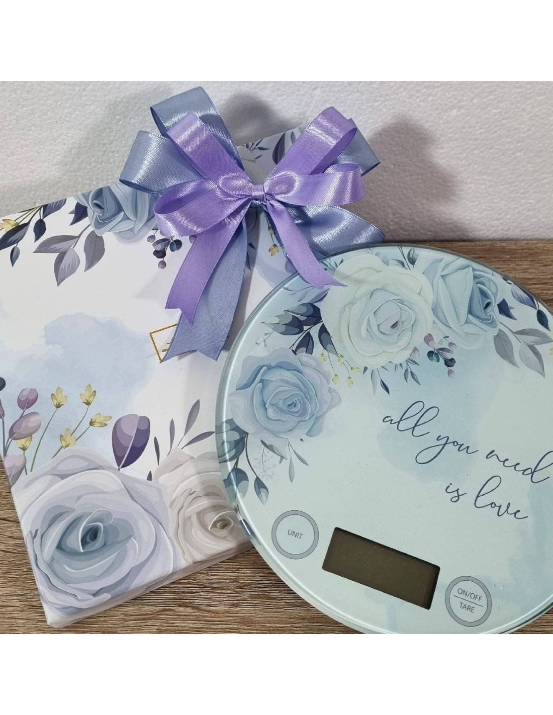 Scatola in scomparti con confetti, rosa eterna e candele...