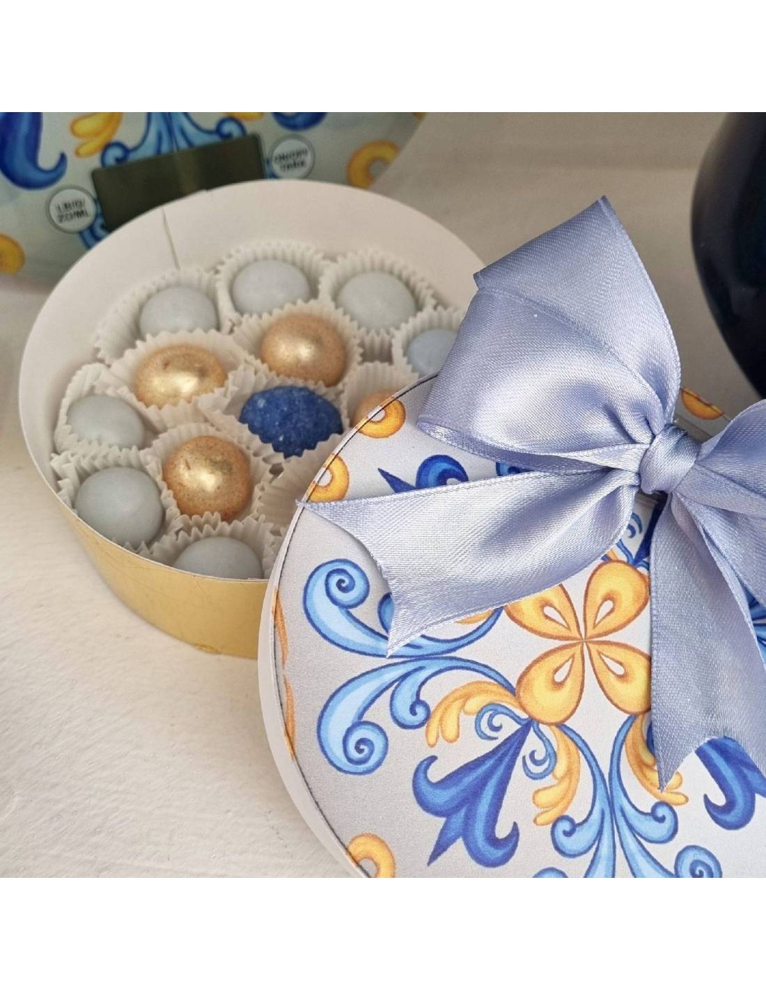 Cod.3 scatola degustazione confetti completa di confetti come in foto dimensione 10 cm circa