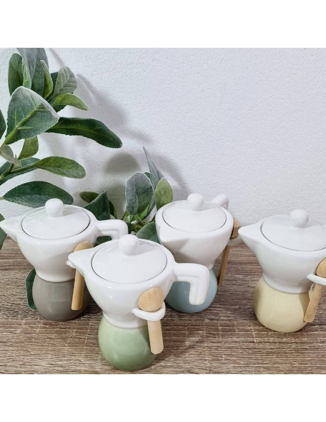 Ottime idee bomboniere utili questa zuccheriera a forma di moka con cucchiaino in legno.