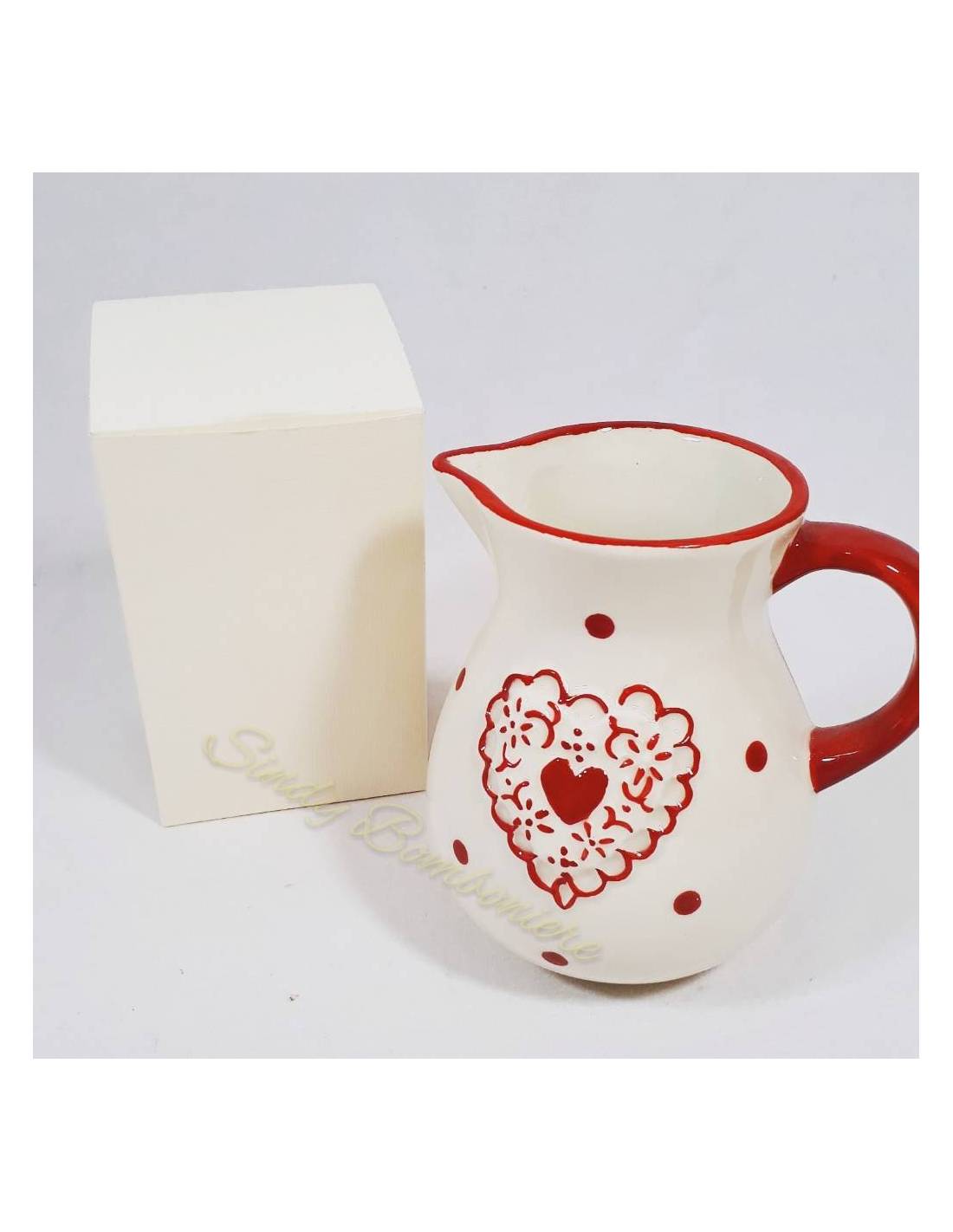 Bomboniere utili Brocca in porcellana Shabby chic con dettagli rossi