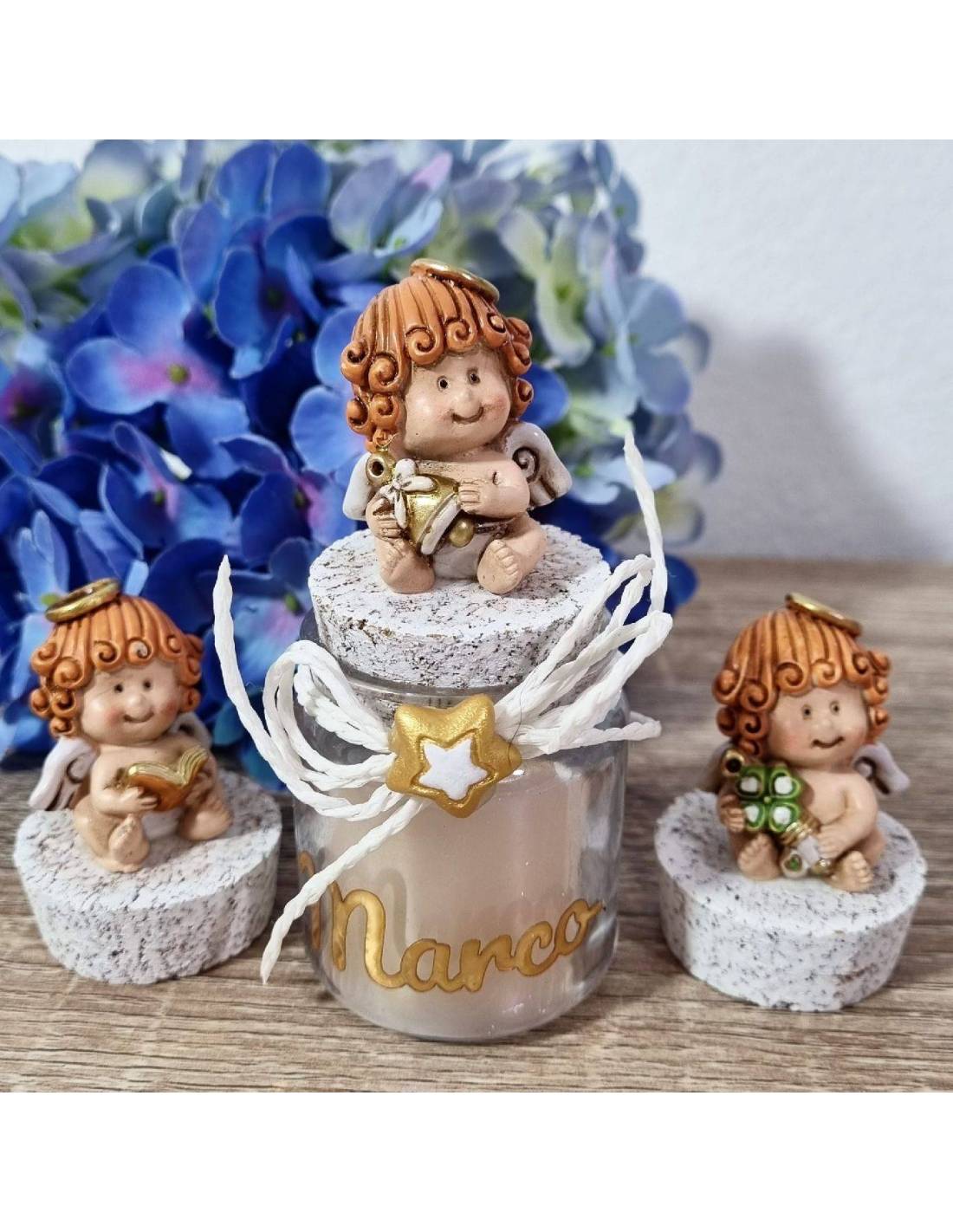 Bomboniere Battesimo bimbo portacandela con pumo traforato e piattino