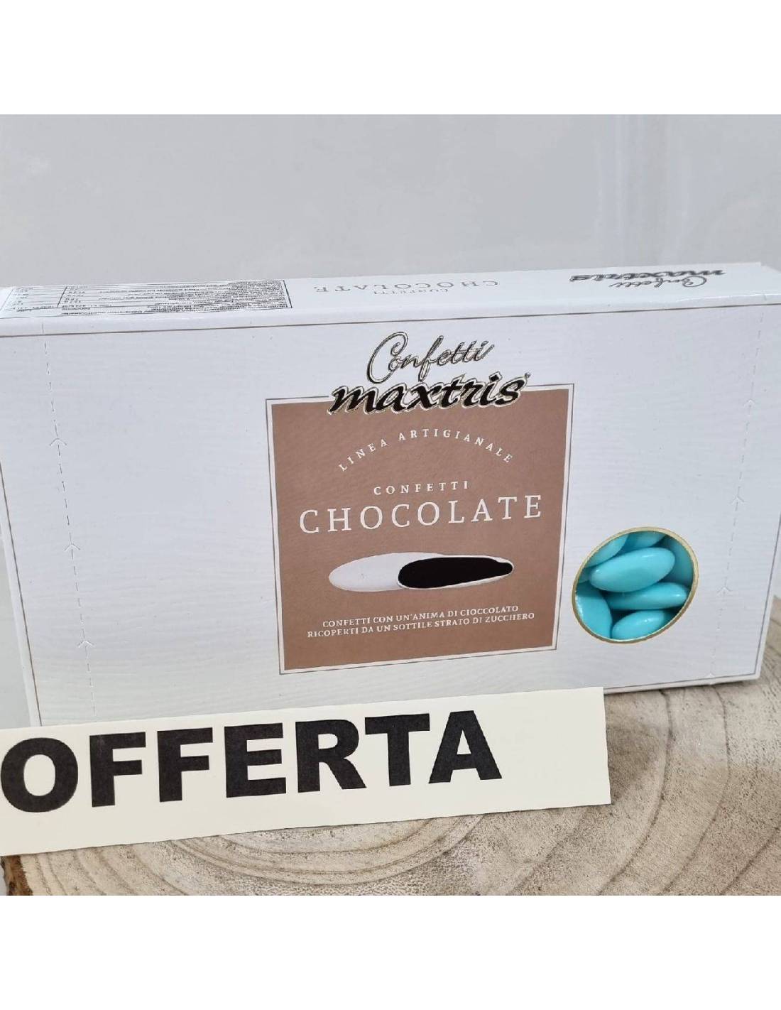 Confetti celesti al cioccolato fondente ideale per confettata o per confezionare bomboniere battesimo bimbo