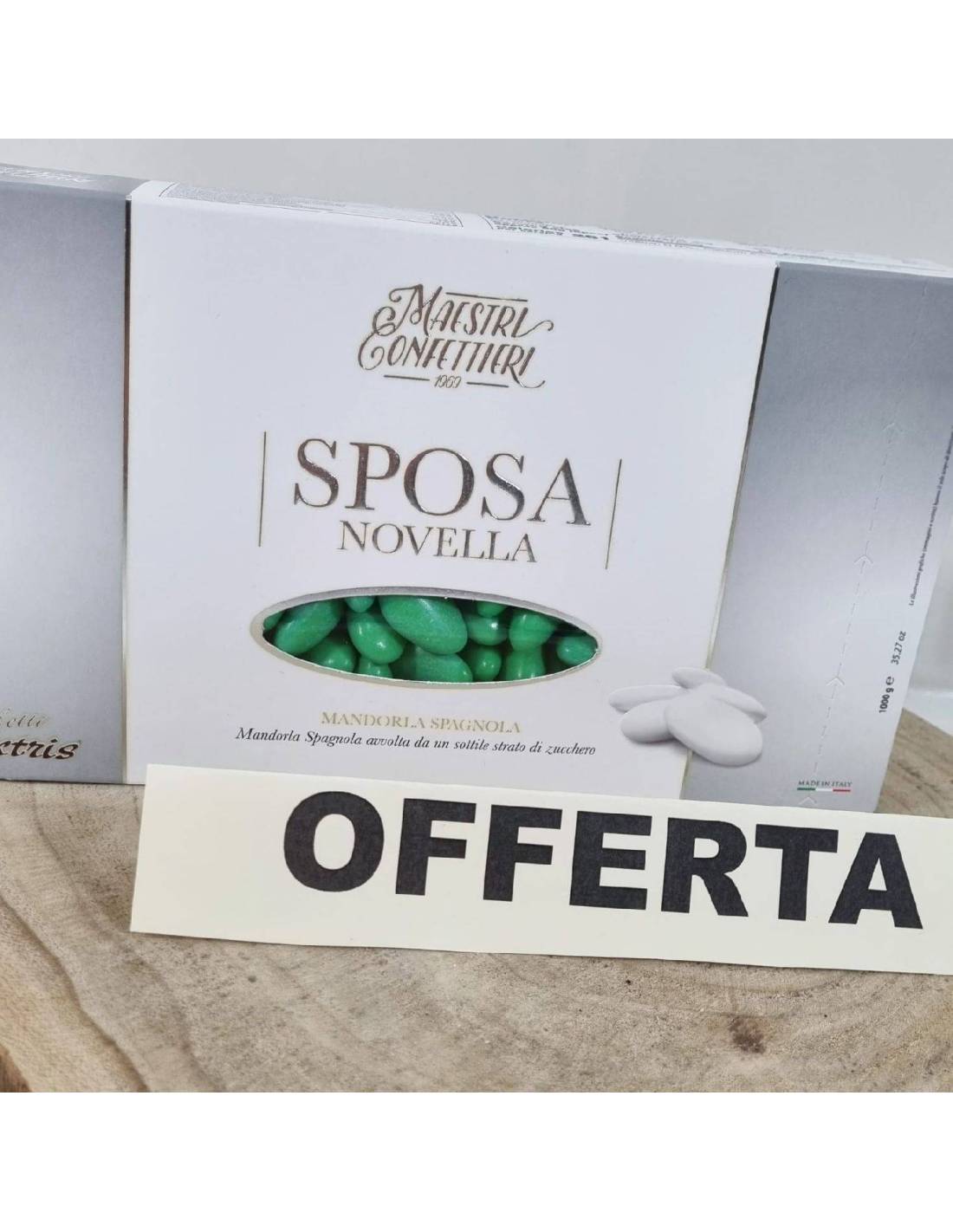 Il verde è il colore in assoluto dei confetti promessa di matrimonio e in questa confezione da 1 kg sono circa 280 pz.