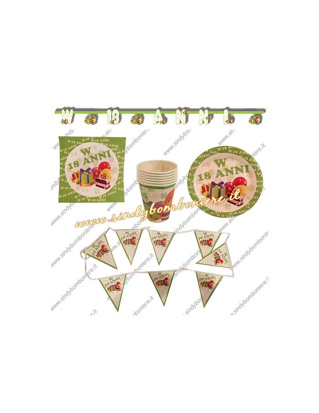 KIT 18 anni Coordinato PIATTI-BICCHIERI, Tovaglioli BANDIERINE FESTONE Diciottesimo Compleanno