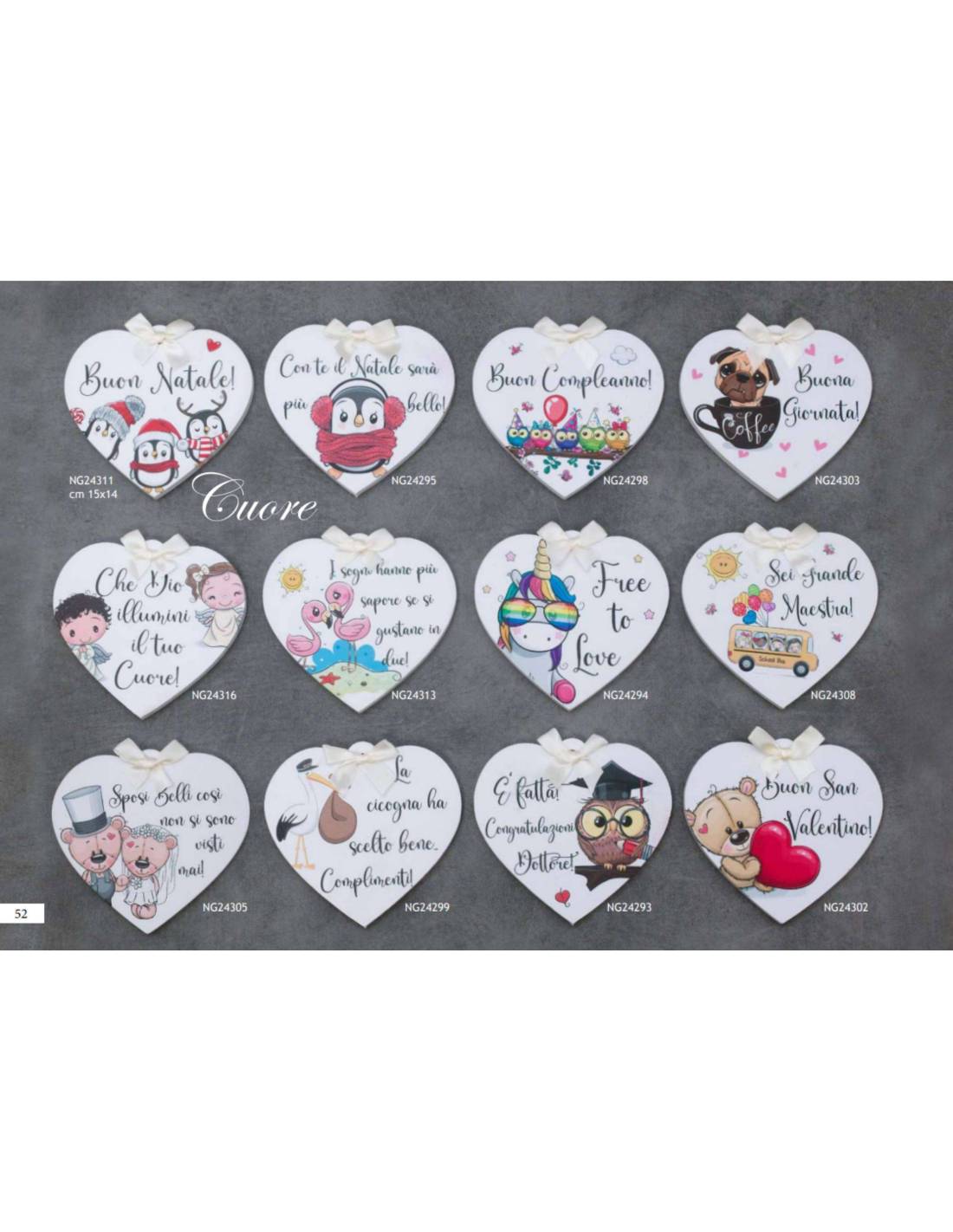 Cod.10 - NG24311 - Bomboniere animali pinguini cuore con frase 'Buon natale!'.