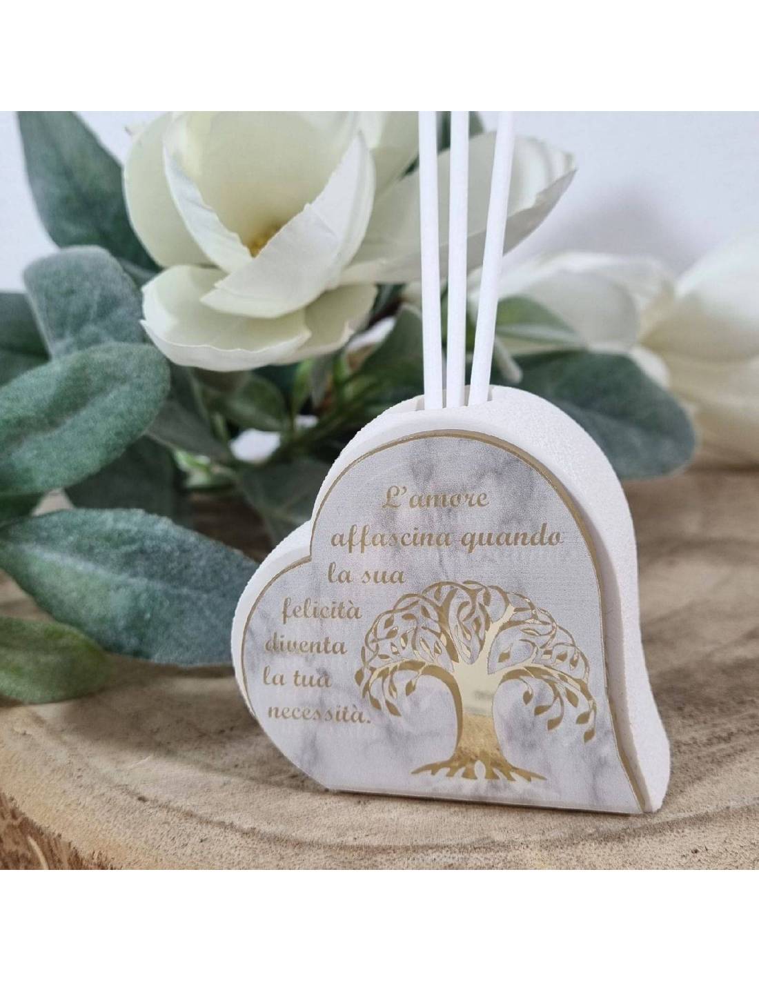 Eleganti e particolari Dolcicose bomboniere profumatori dettagli dente di leone e frasi.