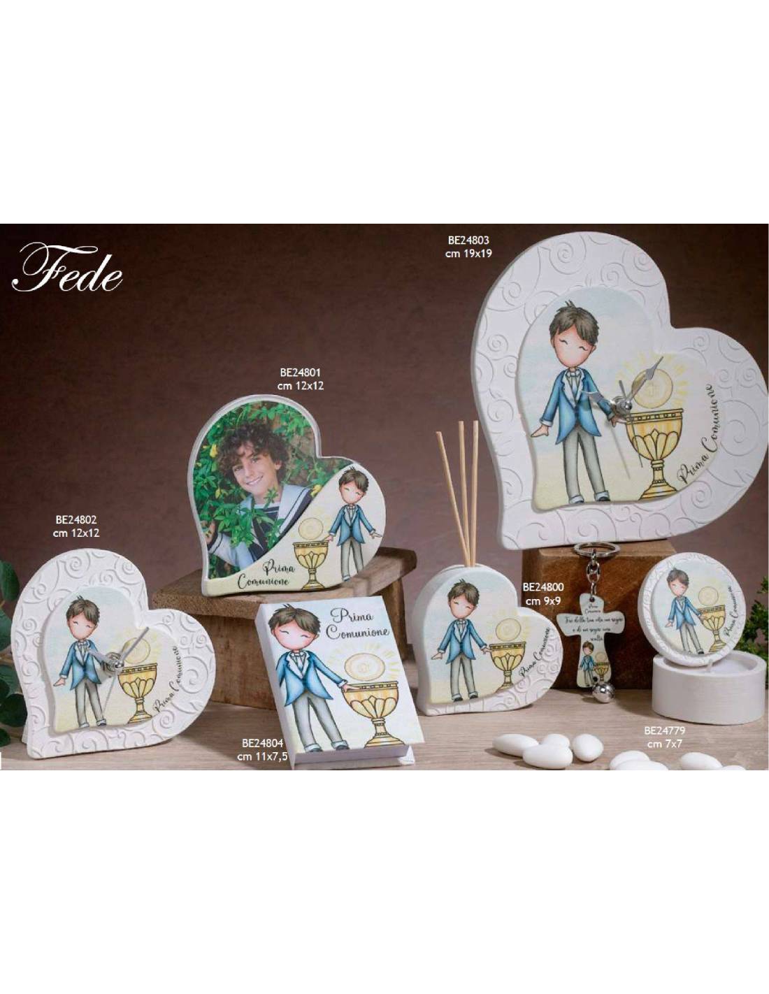 Linea Fede per Bomboniere Prima Comunione ragazzo con l'immagine sacra del calice e il bambino.