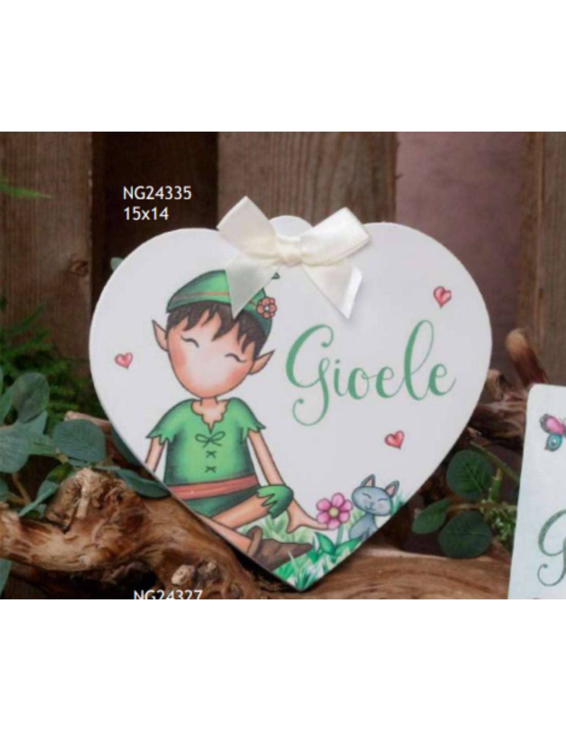 Dolcicose bomboniere folletto Linea Favola cuore in polvere di ceramica bianca con stampa colorata bimbo folletto.