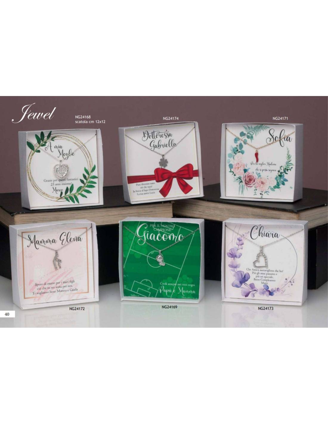 Cod.4 - NG24172 - Scatole bomboniere collana frase 'Spero di essere per i miei figli ciò che tu sei stata per noi. Ti vogliamo bene' e nomi personalizzati.