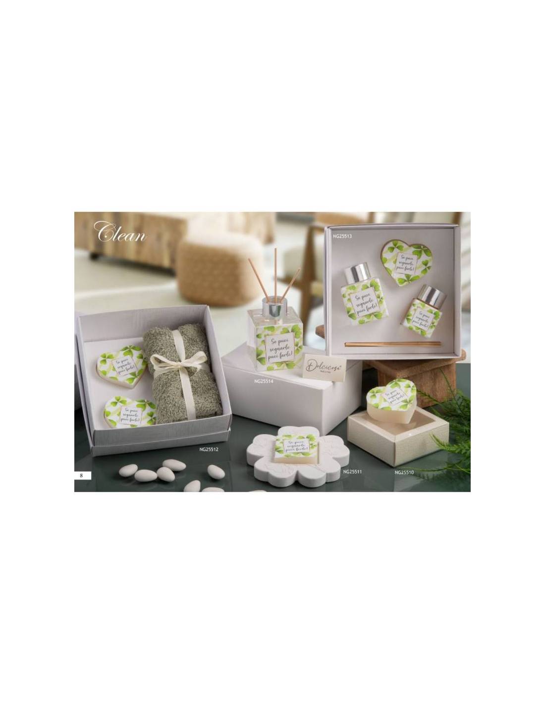 Cod.3 - NG25512 - Bomboniere cuori frase 'Se puoi sognarlo puoi farlo!' e asciugamano;