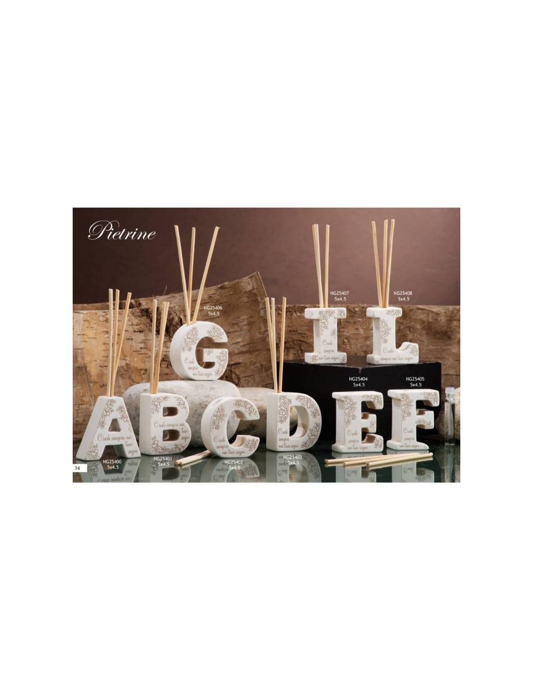 Dolcicose bomboniere Linea Pietrine profumatori ambienti lettere decoro floreale