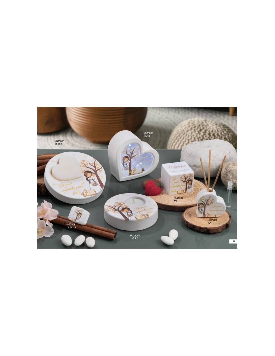Cod.6 - NG25085 - Saponette bomboniere cuore su base tonda (Ø 11.5cm circa).