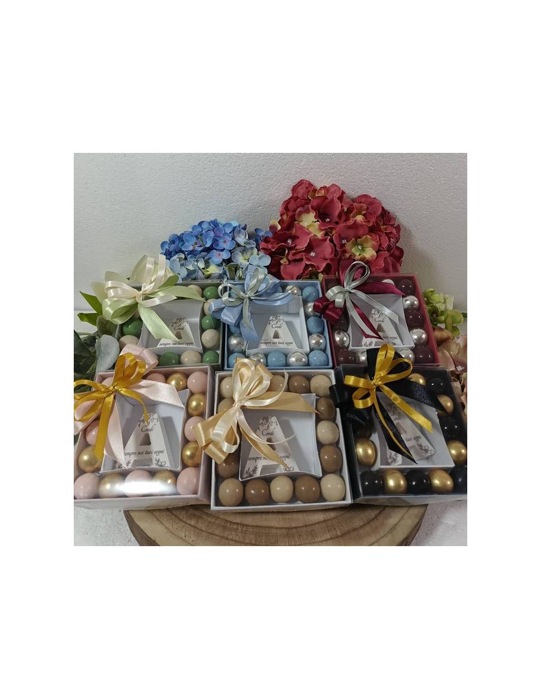 Bottigliette liquori mignon bomboniere complete di confezione a kit e a casa ti arriverà: la bottiglia, la scatola personalizzata, i confetti, i pirottini e il fiocco già assemblato dovrai solo attaccarlo, tutto questo per...