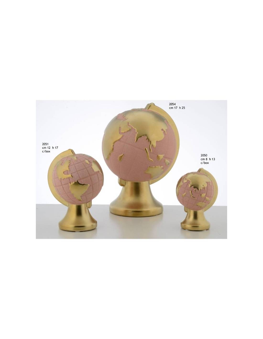 Bomboniere particolari mappamondo rosa in ceramica continenti dorati con possibilità di scelta tra varie dimensioni.